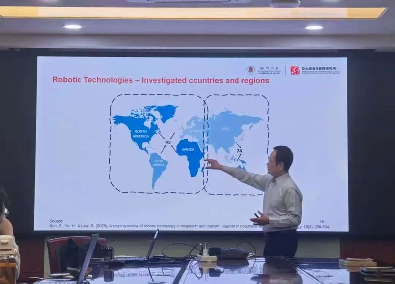 2025年10月20日,应我院人工智能与人因工程系(筹)孙兆辉副教授邀请,澳门大学发展基金会讲席教授Rob Law到访我院,并作题为“心理学与技术视角的旅游与酒店技术:应用、挑战与未来方向”的前沿学术报告,开启了一场横跨心理学、信息科学与旅游管理的跨学科思想盛宴。本次报告被列为“人文与社会科学研究院知名学者学术讲座”。报告由孙兆辉主持。