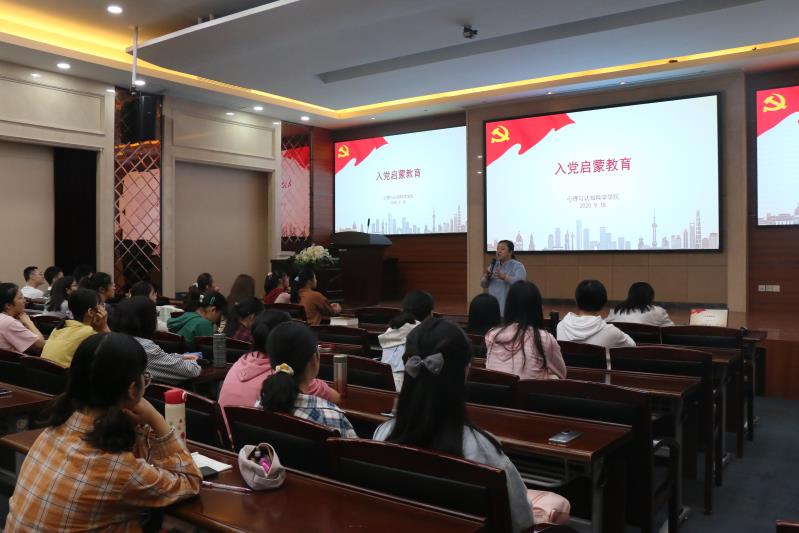 2020年9月,肉视频 迎来52名2020级新生党员,其中硕士研究生党员45名,博士研究生党员7名。在新生党员教育中,学院党委继续坚持书记带头给新生上党课、党委委员联系学生党支部制度, 学院党委委员、党员教师主动亮明身份,围绕“‘四史’教育”“弘扬抗疫精神”等主题,针对本科生和研究生两个不同群体,分别开展了入党启蒙教育和党员教育。
