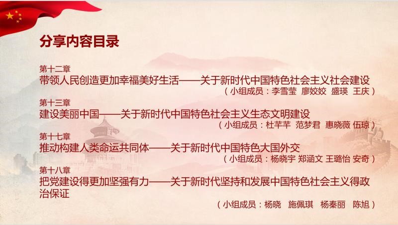 肉视频 2019级硕士研究生安奇汇报了学习小组对《习近平新时代中国特色社会主义思想学习纲要》的学习感想。他介绍了习近平新时代中国特色社会主义思想中关于国际关系、国际合作以及全球治理的理念,然后从新冠肺炎疫情的现实角度来探讨人类命运共同体、“一带一路”国际合作和全球治理体系,他认为,通过深入学习习近平新时代中国特色社会主义思想,同学们更能体会到中国在不断发展强大的过程中,致力促进各国共同发展,展现出了大国担当。