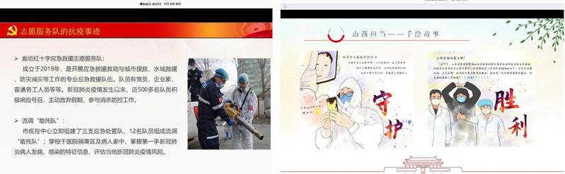 董浩然、董璞等3位同学重点介绍了家乡在此次抗击新冠肺炎疫情中涌现出的先进事迹。董浩然着眼于家乡河北省廊坊市红十字应急救援服务队和“党员敢死队”的抗疫感人故事,体现出党员同志不畏牺牲、身先士卒的战疫精神,全体人民万众一心、众志成城的战疫决心。董璞从山西省支援湖北的医护人员、支持湖北电力建设的煤炭企业等方面分享了抗疫中的山西担当。