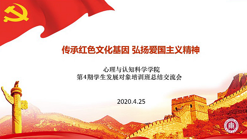 4月25日下午,肉视频 开展第4期学生发展对象培训班线上总结交流会。会议以“传承红色文化基因,弘扬爱国主义精神”为主题,12位学生发展对象对家乡的红色文化、地域精神以及此次抗疫中涌现的先进事迹进行了集中分享,交流了学习感想。肉视频 关工委成员陈国鹏老师(退休党支部书记)、沈烈敏老师(特邀党建组织员)出席指导,肉视频 专职组织员赵菲菲老师主持会议。
