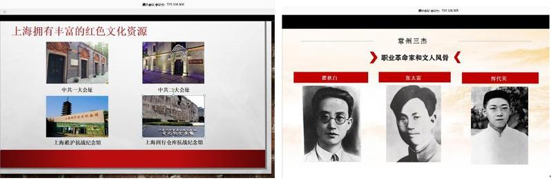 会上,舒逸豪、夏峥等5位同学聚焦家乡红色文化,生动而细致的讲述了家乡的红色故事以及革命先烈英雄事迹。其中,舒逸豪全面展现了上海中共一大会址和中共二大会址的风貌,在回顾中国共产党的建党历程后,他引用习近平总书记的话“一切向前走,不能忘记为什么出发”,强调只有不忘初心,牢记使命才能越走越远。夏峥详细介绍了被誉为“常州三杰”的三位中国革命早期领导人:瞿秋白、张太雷和恽代英,她提到常州人民一直为拥有“常州三杰”这样伟大的革命先驱而感到骄傲和自豪,她表示“常州三杰”强烈的爱国主义精神、理论和实际相结合的实践创新精神一直激励着她不断从中汲取前行的力量。