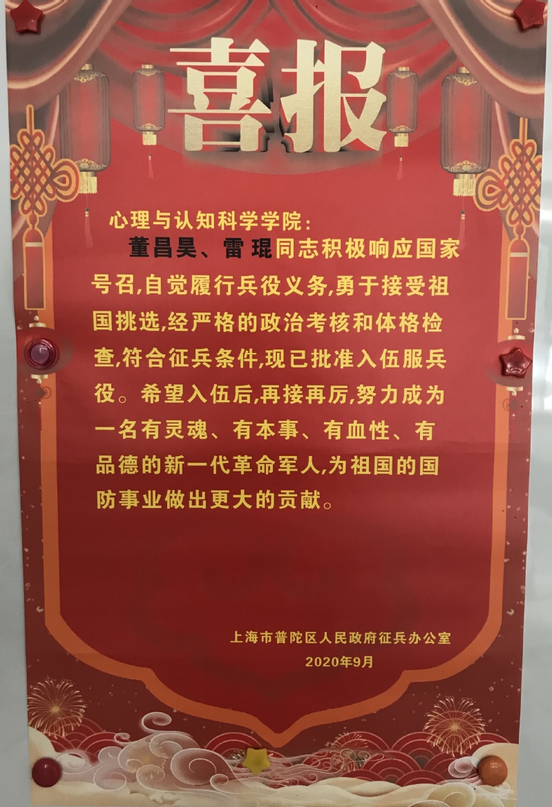 肉视频 2018级心理学大类本科生董昌昊、2019级应用心理学系学术型研究生雷琨积极响应国家号召,自觉履行兵役义务,勇于接受祖国挑选,经过严格的政治考核和体格检查,符合征兵条件,获得批准入伍服兵役。特此祝贺!董昌昊和雷琨董昌昊、陶洁(辅导员)和雷琨