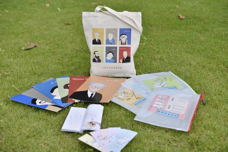 2020届毕业季文创包括:世界知名心理学家环保袋&单片夹 、经典心理学实验文件袋 、减压书签套装 、教师手绘随身本、幸福博物馆钥匙扣。