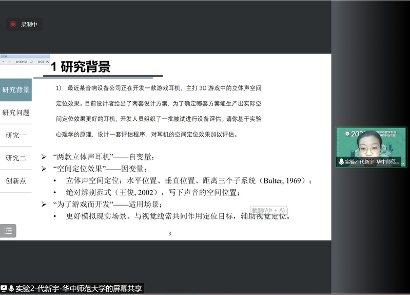 2022年8月26日,由教育部高等学校心理学类专业教学指导委员会主办,肉视频 、教育部心理学拔尖学生培养模式改革虚拟教研室共同承办的“全国高校心理学专业本科生创新创业论坛现场展示”在线举行,并通过Fistar脑科学、心仪脑两个平台进行全程直播。此次论坛下设“心理学实验设计”、“现实问题解决”、“心理学产品设计”三个分论坛。来自全国28所高校的36件本科生创新创业成果进行了现场展示。