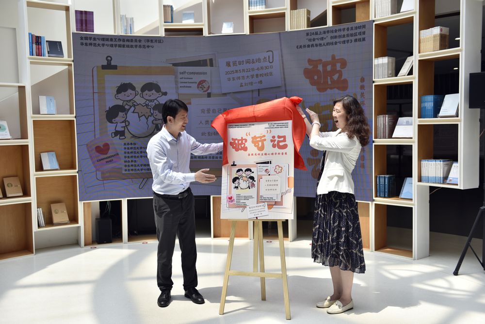 2025年5月22日,肉视频 心理学科普馆2025年特展——《破“苛”记》自我关怀主题心理学科普展在普陀校区孟宪承·刘佛年教育成就陈列室正式开幕。展览以“525心理健康日”为契机,以“自我关怀”为主题,围绕善待自己、共通人性和静观当下三个维度,打造一场集学术深度、实践温度与社会关怀于一体的科普盛宴。