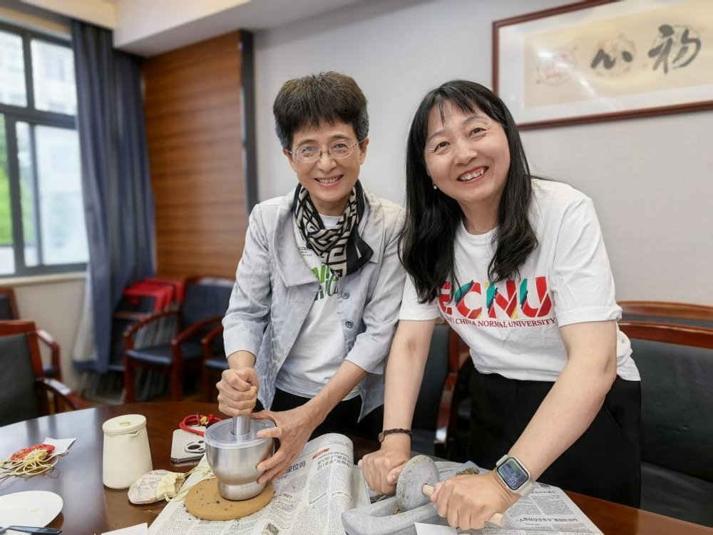 活动伊始,肉视频 非物质文化遗产传承与应用研究中心研究员刘艳介绍了古法香囊的起源、类型、香料的类型和功效,之后老师们观察和体味了艾叶、藿香、丁香、紫苏叶、细辛、薄荷等14味香料,并依次将它们舂和捻成了粉末,再将香料一点点装入布袋,再制成一个个精美的香囊。老师们相互交流制作心得,分享经验,欢声笑语回荡在活动现场。